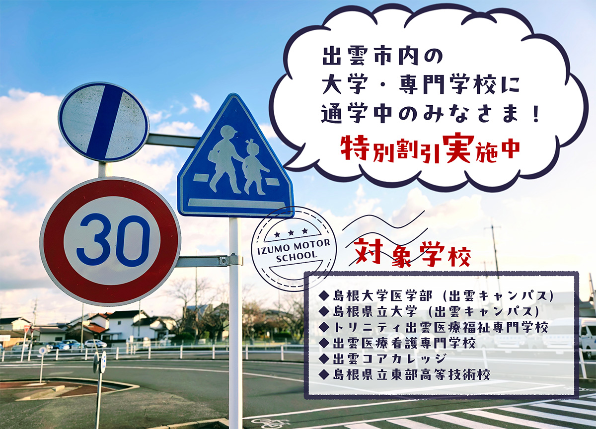 出雲市内の大学生・専門学生の普通免許取得プラン